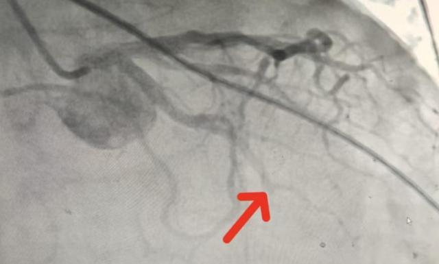 (▲冠脉造影提示回旋支远端完全闭塞。)