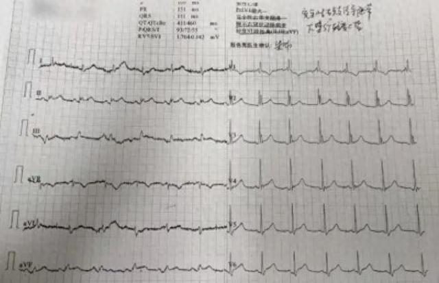 (▲心电图报告显示:II、III、AVFST段明显上抬,病理性Q波形成提示下壁心肌梗死。)