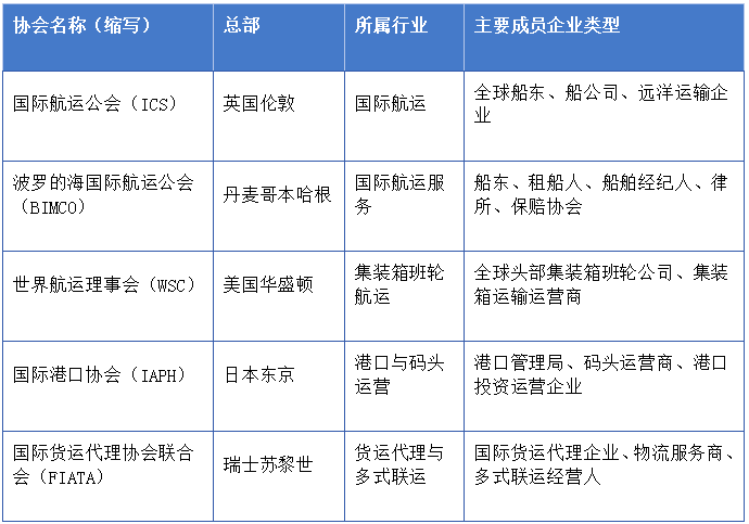 国际航运相关主要行业协会概况 作者制表,下同